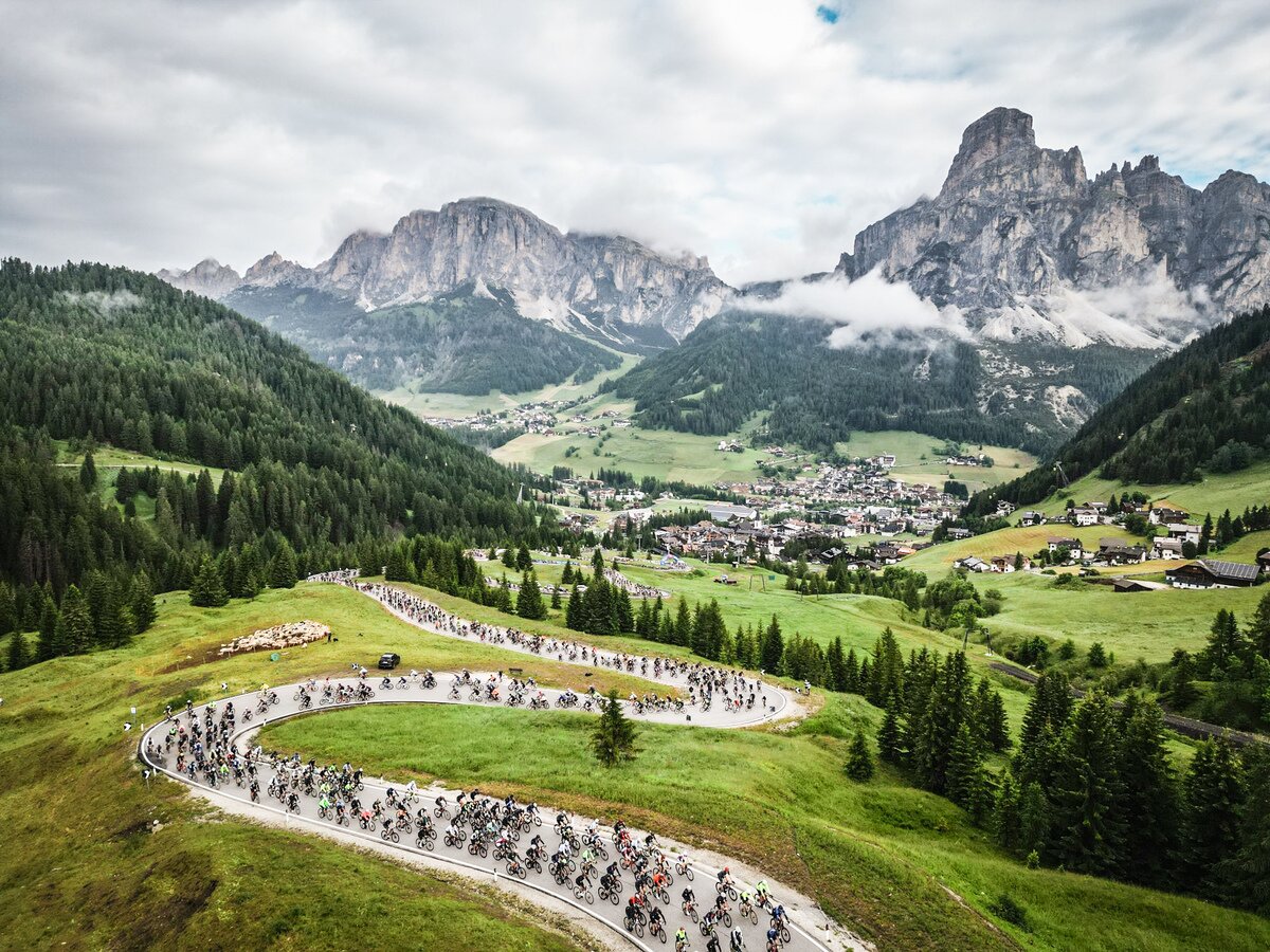 The route through Passo Campolongo, Pordoi, Sella, Gardena, Giau and Valparola represents a true epic in the world of cycling, with a succession of iconic climbs that have written the history of this sport.